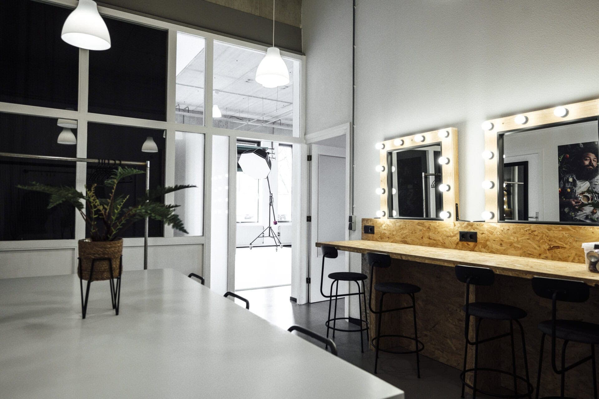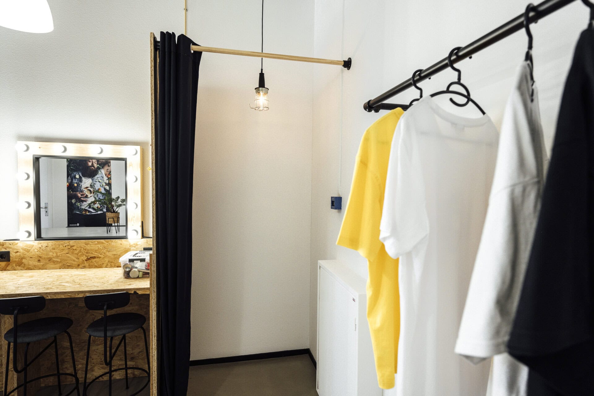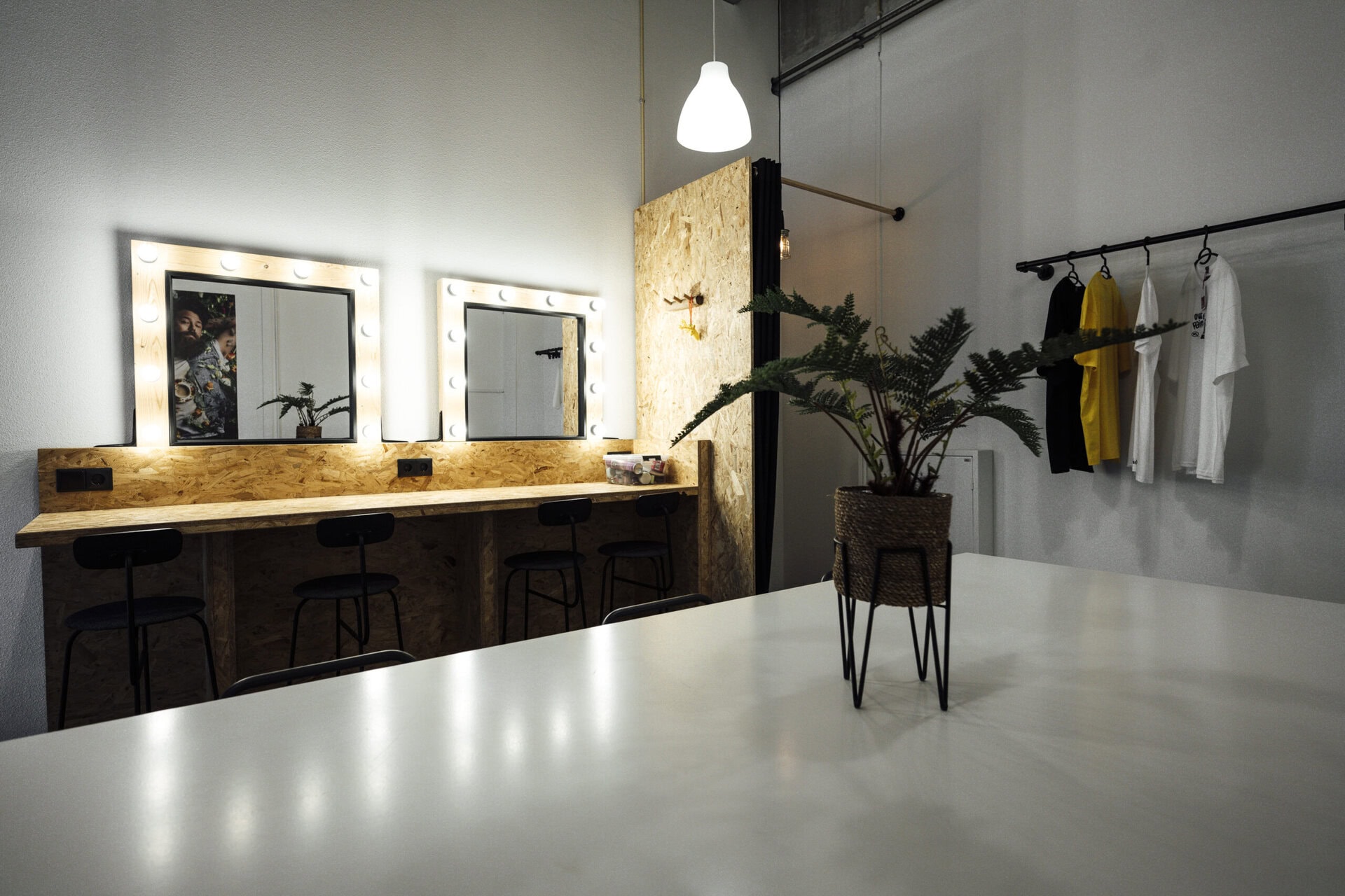 De realiteit nog mooier maken. Laat de vreemde wereld even achter je en smeer, strijk, klad, klieder en kleed de realiteit hier een beetje mooier aan. In onze visagie ruimte heb je alle benodigdheden voor next level visagie, of gewoon wat privacy tijdens het omkleden.